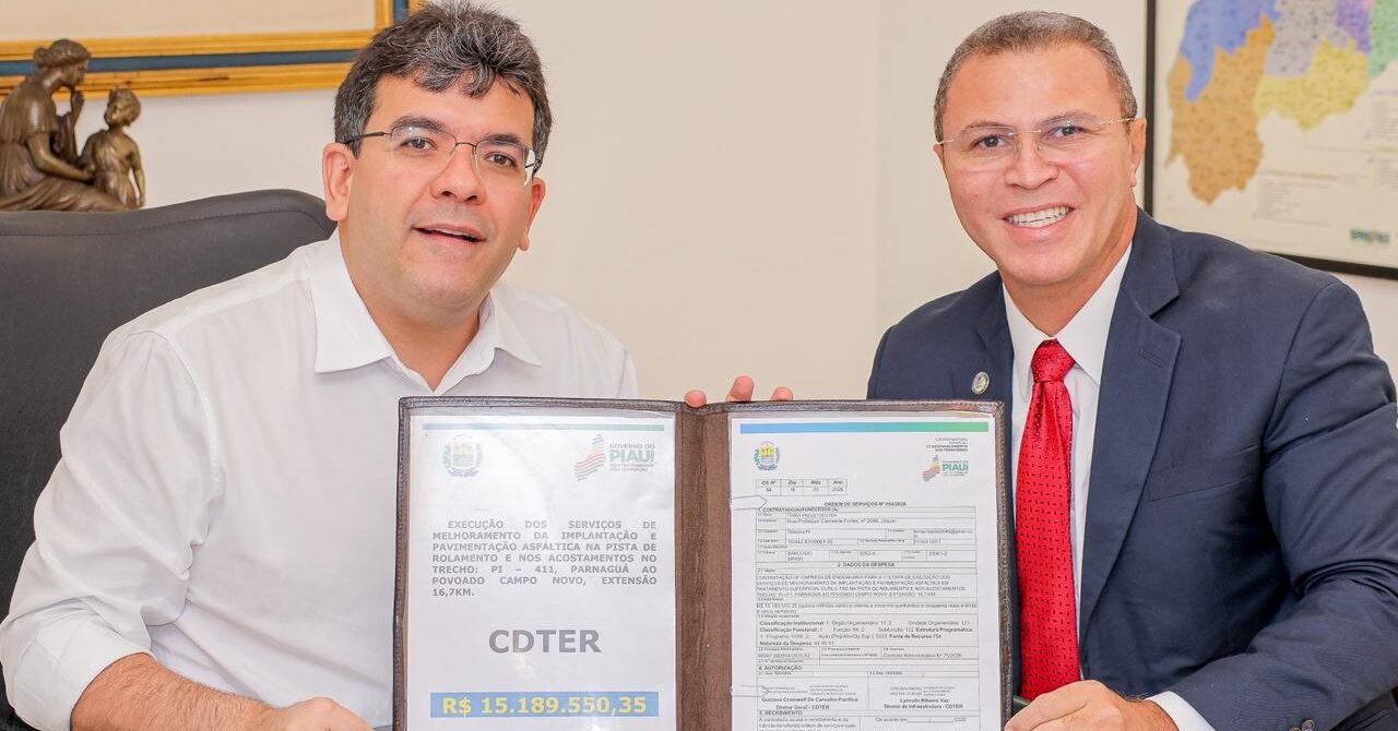 O governador Rafael Fonteles assinou, nesta sexta-feira (27), no Palácio de Karnak, a ordem de serviço para a execução da 1ª etapa de melhoria da implantação e pavimentação asfáltica da rodovia PI-411, no trecho entre o município de Parnaguá e o povoado Campo Novo, com extensão de 16,7 km. A obra, executada pela Coordenadoria Estadual de Desenvolvimento dos Territórios (CDTER), terá investimento superior a R$ 15 milhões e deve melhorar a trafegabilidade, reduzir o tempo de deslocamento e facilitar o acesso a serviços e atividades produtivas na região.