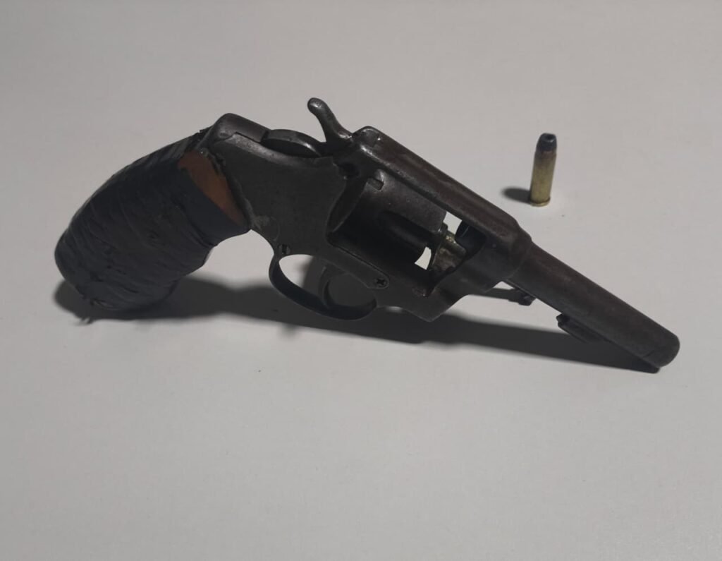 Durante a abordagem aos frequentadores do estabelecimento, os militares localizaram, na cintura de T. L. da S. um revólver calibre .32 com numeração suprimida e uma munição intacta. Diante da ilegalidade, já que o porte de arma de fogo sem autorização é crime previsto na Lei nº 10.826/2003 (Estatuto do Desarmamento), foi dada voz de prisão ao indivíduo.