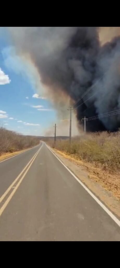 Um incêndio de grandes proporções foi registrado por populares, na PI-255 trecho que liga os Municípios de Parnaguá a Curimatá, no extremo sul do Piauí nessa quinta-feira 09 de Outubro. Os registros de imagens que viralizaram nas redes sociais assustam pela pela dimensão das chamas e o alcance da nuvem de fumaça .