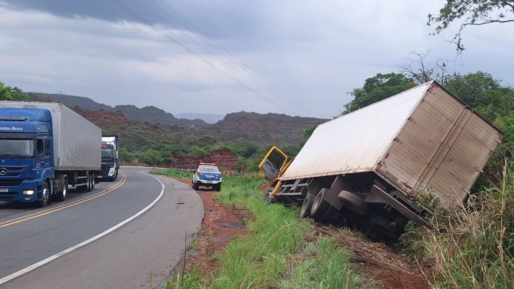 Enquanto isso, o trânsito no trecho segue normalizado, e o motorista aguarda orientações das autoridades para remoção e reparo do caminhão.